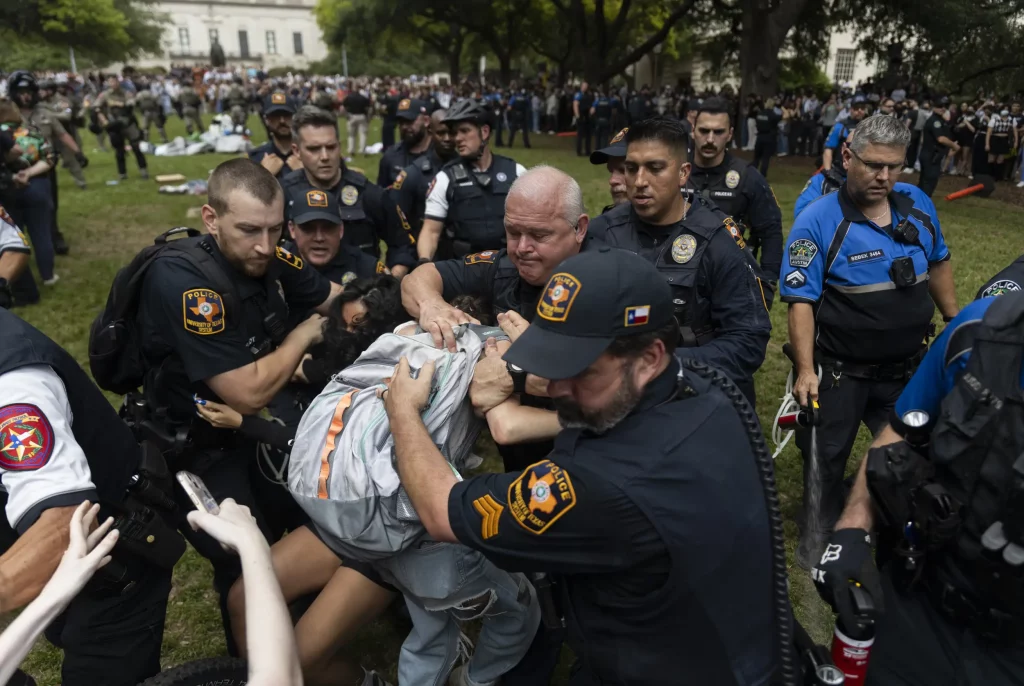 UT 오스틴에서 34명이 체포되고 부상자가 속출한 무력진압에 표현의 자유를 옹호하는 단체들의 비난이 이어지고 있다.
