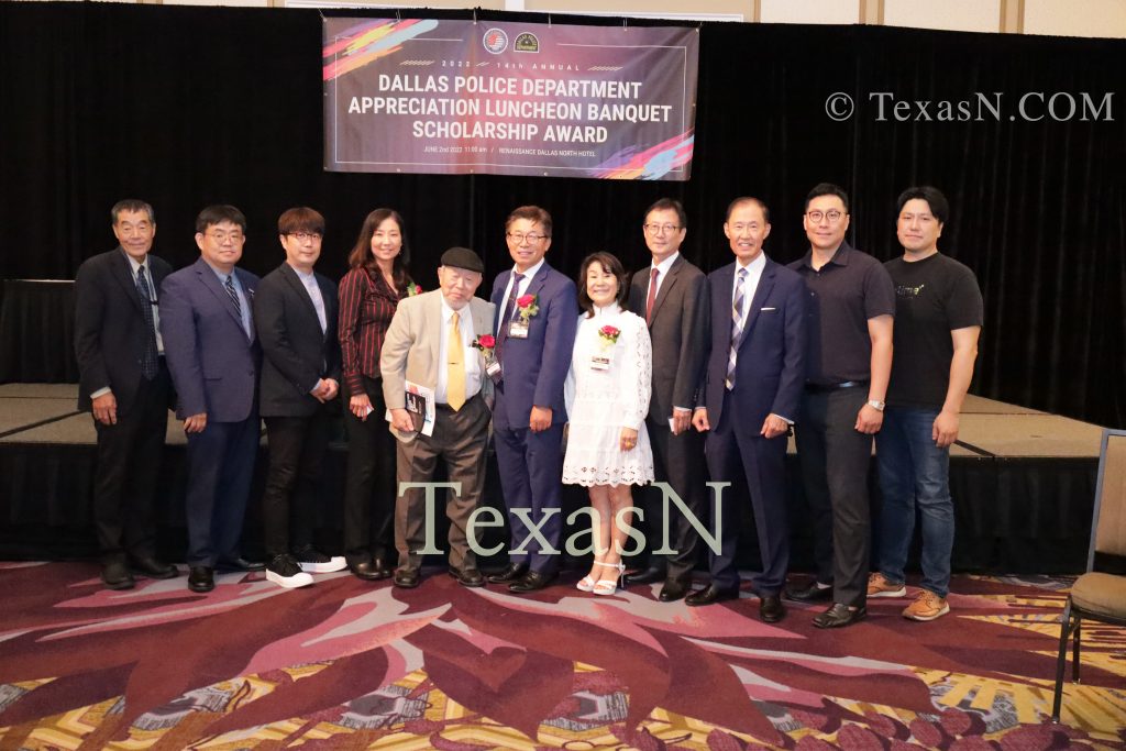 [사진=텍사스N] 2022년 열린 달라스 경찰국 감사오찬 및 경찰관 자녀 장학금 수여식에 모인 달라스 한인상공회 임원진들