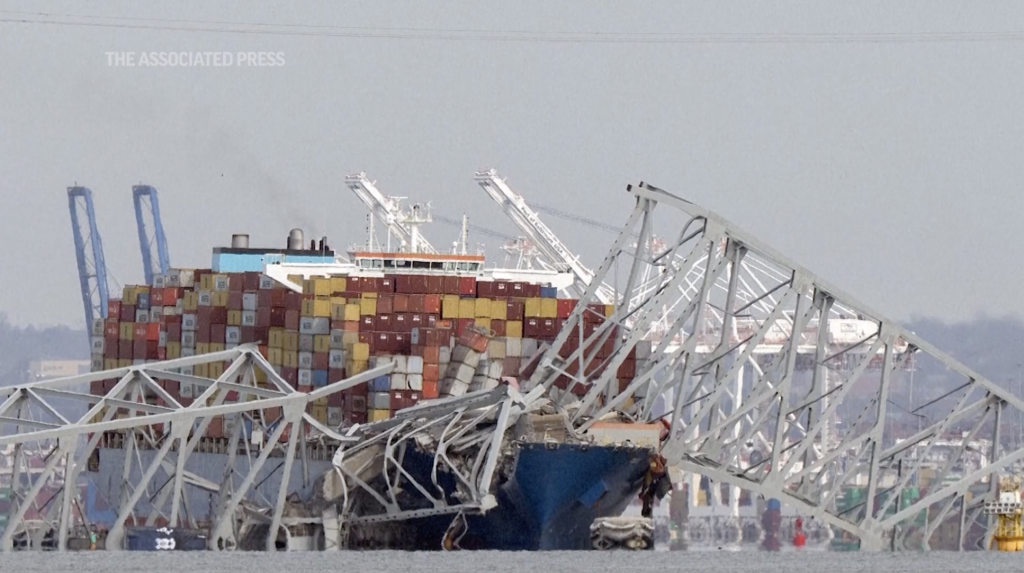26일(월) 오전 1시 30분 매릴랜드 도심 남동부 지역에 패탭스코 강 위를 지나던 싱가포르 국적 화물선 달리호가 프랜시스 스콧 키 다리 교각을 들이받아 1.6마일 길이의 다리가 모두 무녀져 내렸다. 이로 인해 다리위 차량들이 물에 빠지고 근로자 8명 중 6명이 실종됐다.
