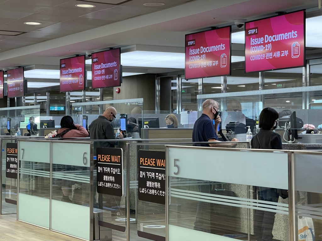 사진/ 인천공항 입국심사장에서 입국하는 외국인들의 코로나19 관련 자료를 확인하고 있다. Credit by TexasN