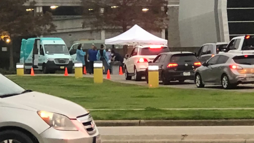 사진 / The line to get COVID-19 tests at the Long Center started filling in three hours before the clinci’s schedule opening at 8 a.m. (KXAN photo/Frank Martinez)