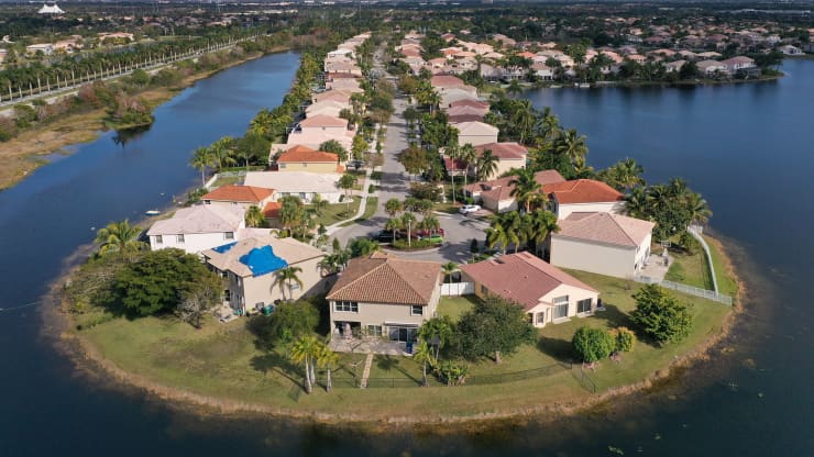 사진 / CNBC(An aerial view from a drone shows homes in a neighborhood on January 26, 2021 in Miramar, Florida. According to two separate indices existing home prices rose to the highest level in 6 years.Joe Raedle | Getty Images)