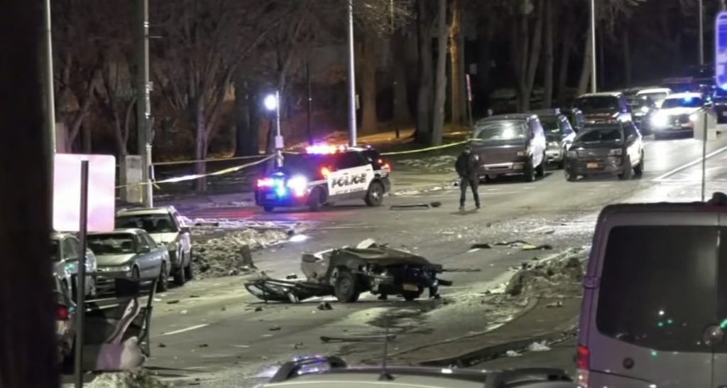 뉴욕 욘커스(Yonkers, New York) 경찰에 따르면 22일(화) 밤 9시 23분경 빠른 속도로 주행하는 인피니티 세단 차량을 발견, 정차를 유도했다 . 그러나 인피니티 차량은 속도를 올리며 도주하다 교차로에서 다른 차량과 충돌했고 충격으로 인해 차량이 산산조각났다.