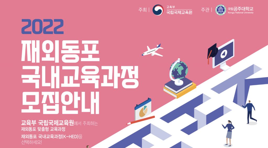 한국의 국립공주대학교 한민족교육문화원에서 교육부 국립국제교육원이 주최하는 2022 재외동포 국내교육과정(K-HED) 참가자를 모집한다.
