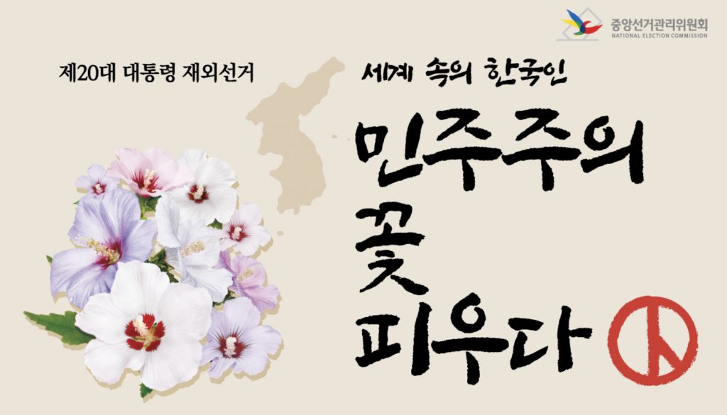 제20대 대한민국 대통령 재외선거에 책임 있는 자세로 참여하고 대한민국 법이 말하는 재외국민과 동포의 권리를 말해야 합니다.