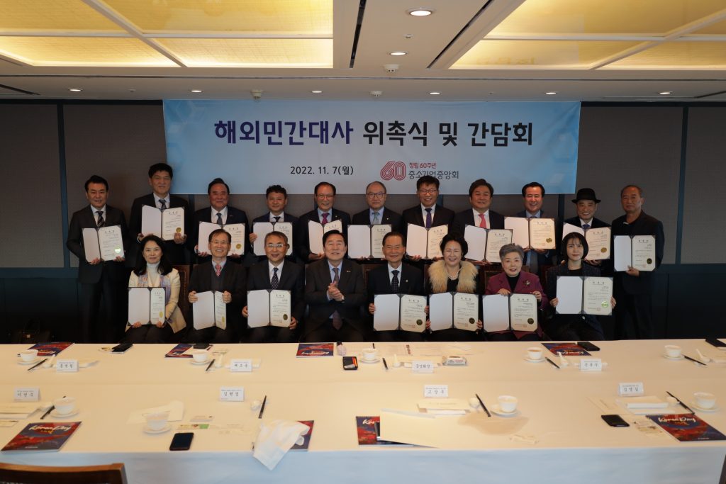 한국 중소기업중앙회 “해외민간대사 20명 위촉, 한국중소기업 해외진출 조력 당부”