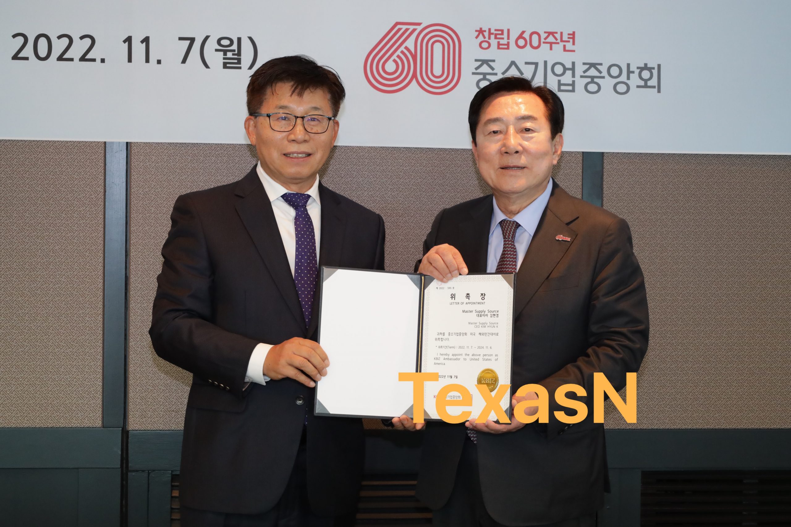 김현겸 달라스 한인상공회장, 중소기업중앙회 해외민간대사 위촉
