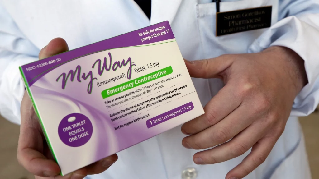 사진/ AP – In this May 2, 2013 photo, pharmacist Simon Gorelikov holds a generic emergency contraceptive, also called the morning-after pill, at the Health First Pharmacy in Boston. The plaintiffs in a legal battle over emergency contraceptives say in a letter Wednesday June 12, 2013, the government has failed to comply with a New York judge’s order to lift all restrictions on sales of the drug. (AP Photo/Elise Amendola, File)