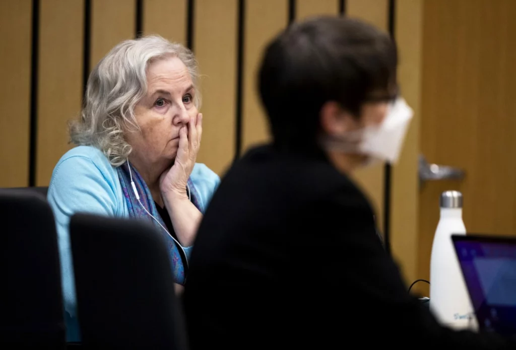 사진/ NBC (Romance writer Nancy Crampton Brophy, accused of killing her husband Dan Brophy, watches proceedings in court in Portland, Ore. on Apr. 4, 2022.)