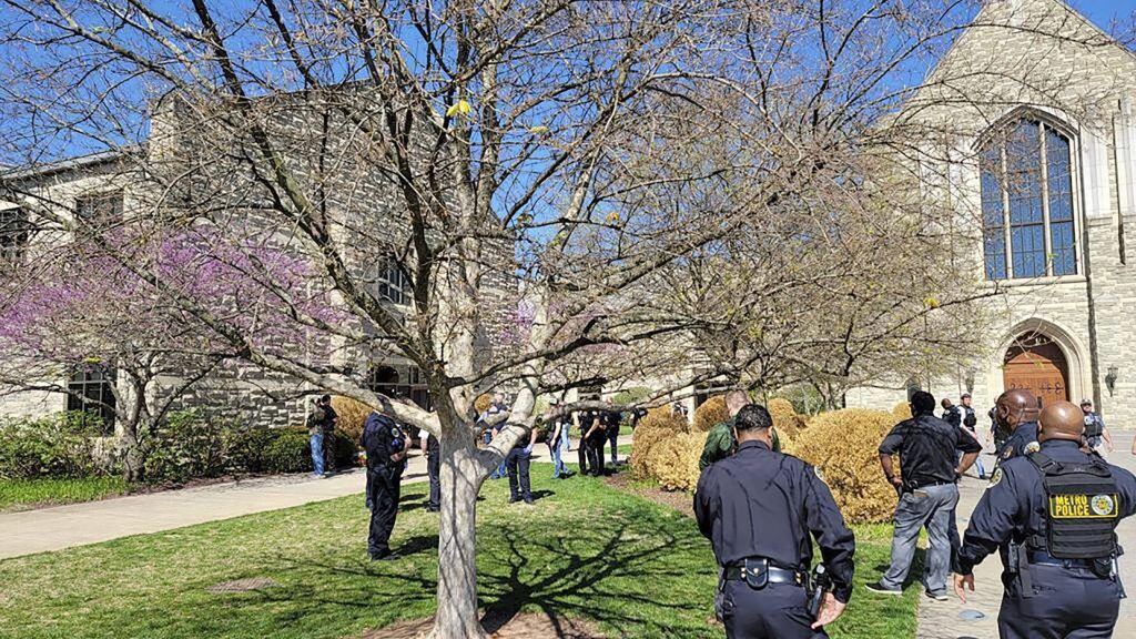 사진/ AP (This photo provided by the Metro Nashville Police Department shows officers at an active shooter event that took place at Covenant School, Covenant Presbyterian Church, in Nashville, Tenn. Monday, March 27, 2023. Authorities say the suspect in a shooting at a private Christian school in Nashville is dead. (Metro Nashville Police Department via AP)(Uncredited / ASSOCIATED PRESS)
