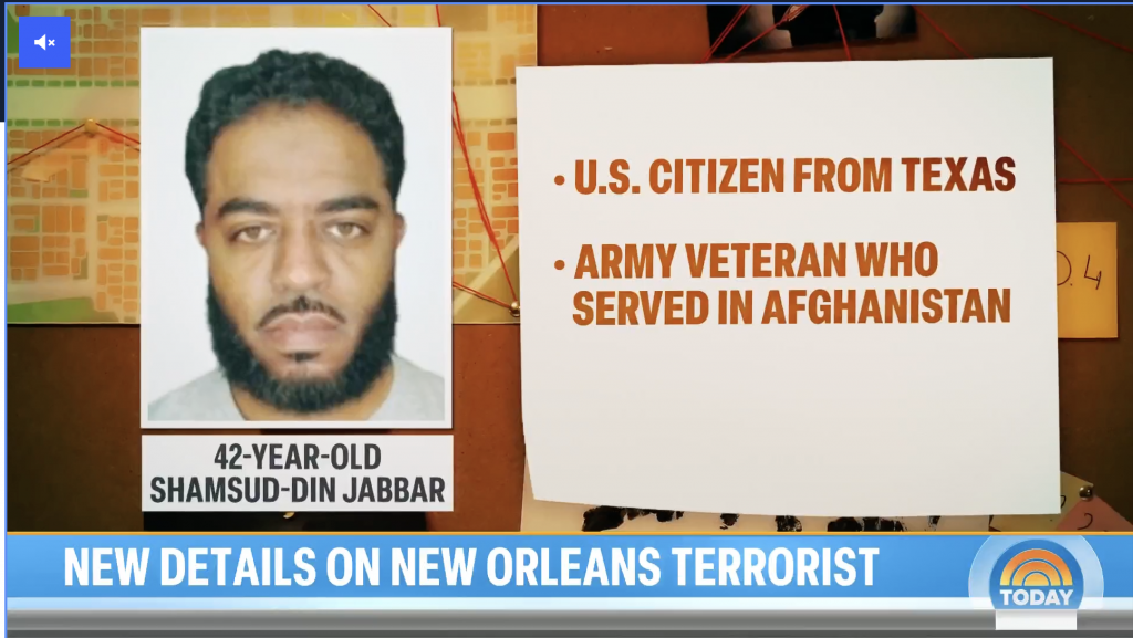 용의자인 샴수드-딘 자바르(42세)는 텍사스 해리스카운티 출신으로 2006년부터 2015년까지 현역으로 육군에서 복무했고, 2015년부터 2020년까지 육군 예비군으로 활동했다고 미 국방 관계자 3명이 전했다.그는 2009년 아프가니스탄에 파병되었으며 행정 사무원으로 근무한 뒤 2020년 하사로 명예 제대했다.