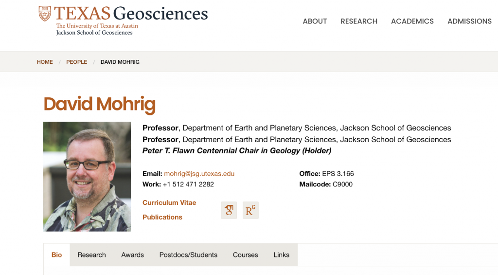 한국석유공사의 수석지질학자인 구웅모 박사는 UT 오스틴 데이빗 모릭교수 연구실에서 퇴적학과 층서학 박사취득후 포스트닥터(박사후과정)로 연구과정에 참여했고 2018년 봄 졸업했다.