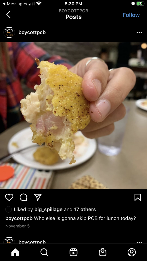문제가 된 학내식당은 PCB 라는 곳으로 학생들이 제공한 사진에 따르면 야채는 시들었거나 곰팡이가 슬었고 고기류는 거의 익지 않은 날 것의 상태였다. 또 소시지도 안익은 상태였을 뿐만 아니라 메쉬드 포테이토 안에서는 고무장갑 조각이 발견되기도 하는 등 최악의 음식이 제공됐다.