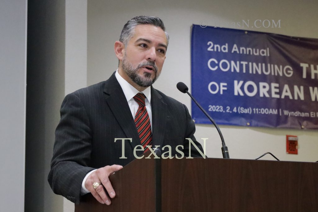 사진/ 지난 2월 텍사스주 엘파소에 열린 한국전쟁참전용사 기념도로 제막식에 참석한 세자르 블랑코 의원은 지난 20일 한미동맹 70주년을 기념하는 결의문을 발의했다. [텍사스N 자료사진]