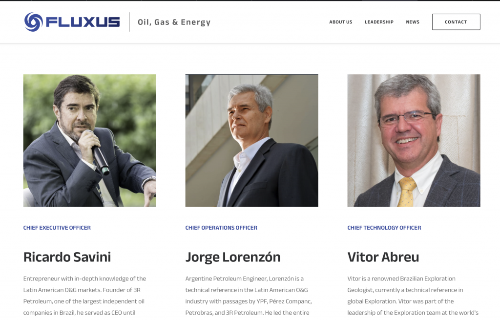 Fluxus는 리카르도 사비니 CEO와 액트지오 대표인 비토리 애브루가 세운 회사다. 사비니 CEO는 유전생산 및 재개발 분야에서 36년의 경력을 보유한 시추전문가이며 비토리 애브루는  Fluxus사의 최고기술책임자이자 에너지 컨설팅 회사 액트지오 대표다.