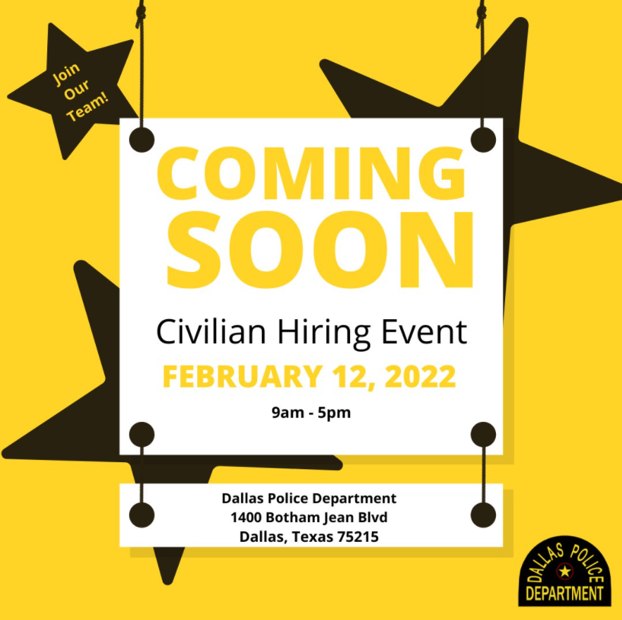 달라스 경찰국이 채용 오는 12일(토) 구인 이벤트를 개최한다.