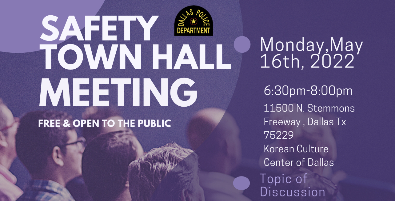 달라스 경찰국에 따르면 오는 16일(월) 오후 6시 30분부터 달라스 한인문화센터 강당에서 안전에 대한 경각심 고취와 범죄 피해자 서비스 정보등을 논의한다.