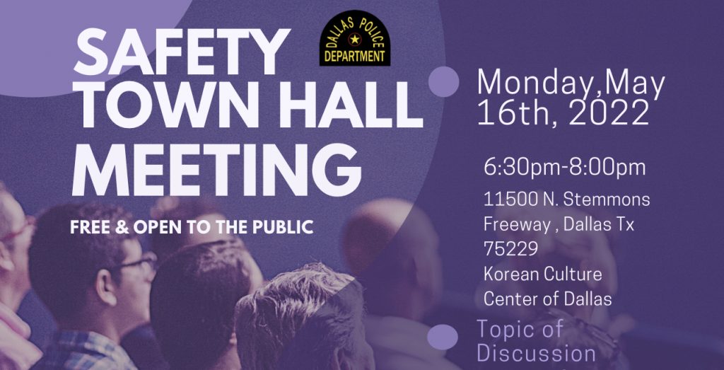 달라스 한인 미용실 총격사건으로 한인타운의 안전에 대한 우려가 커지는 가운데 달라스 경찰국이 한인동포들과 안전관련 타운홀 미팅을 개최한다.