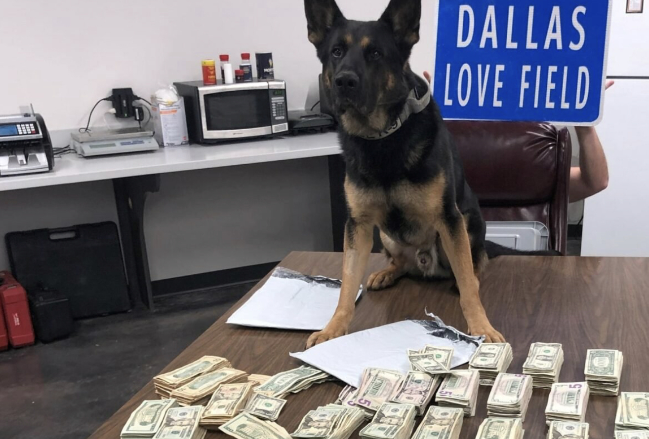 경찰수색견 K-9에 의해 발견된 현금 10만 6,829달러는 시카고를 출발해 달라스를 경유하던 비행기 수화물에서 발견됐고 25세 여성이 해당 수화물의 여성이었다. 달라스 경찰국에 따르면 여성은 체포되지 않았지만 현금은 압류됐다.