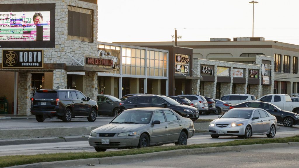 사진/ 달라스모닝뉴스(Cars pass Royal Korea Town Plaza along Royal Lane in Dallas. The Korean Chamber of Commerce is trying to designate a stretch of Royal Lane as Dallas’ official Koreatown.(Elías Valverde II / Staff Photographer)