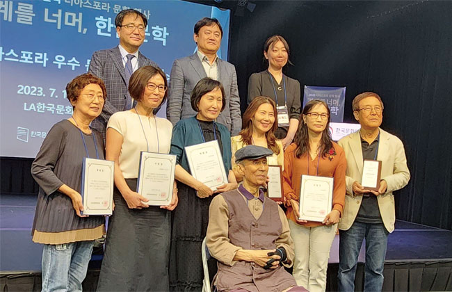 사진출처/ 한솔문학 ( 종합문예지 ‘한솔문학(대표 손용상, 발행인 이도훈)’이  ‘2023 디아스포라 문학상’ 해외 우수 문예지 부문 특별상을 수상했다. 의자에 앉아있는 고 손용상 작가)