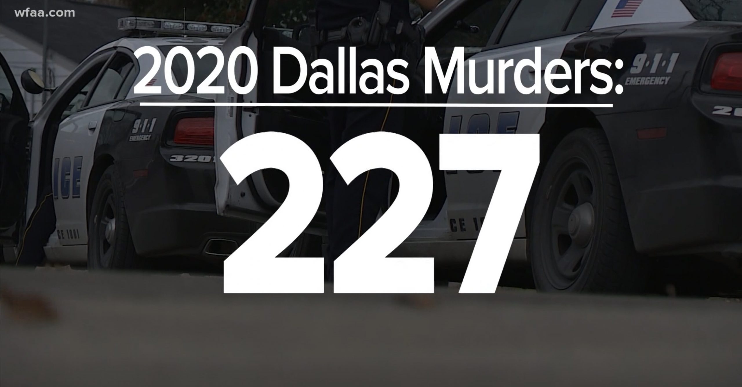 달라스의 살인사건 발생이 16년만에 다시 급증했다.  WFAA보도에 따르면 2020년 현재까지 살인사건은 총 227건으로 지난 2004년 당시 최고기록이었던 248건에 근접했다.