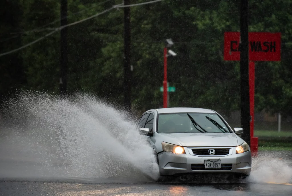 사진/ 텍사스 트리뷴 (A car drives through high water on South Second Avenue in Dallas on Monday. The Dallas-Fort Worth area has been hit with massive rainfall and flash flooding since Sunday night. Credit: Emil Lippe for The Texas Tribune)
