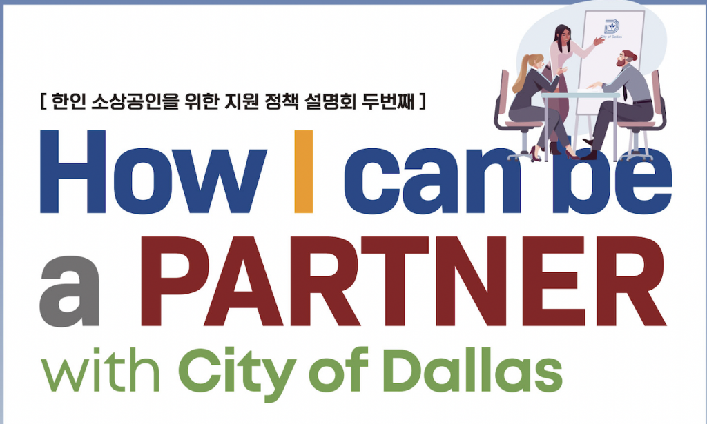 오는 26일(목)  달라스 공립도서관(1563 wood street, Dallas, TX 75201)에서 오후 1시부터 3시까지 두시간 동안 열리는 이번 세미나는 달라스 제3지구 자린 그레이시 시의원을 비롯해 스몰비즈니스 담당관 조이스 윌리엄스 등 공공입찰 관련자들이 패널로 참석할 예정이다.