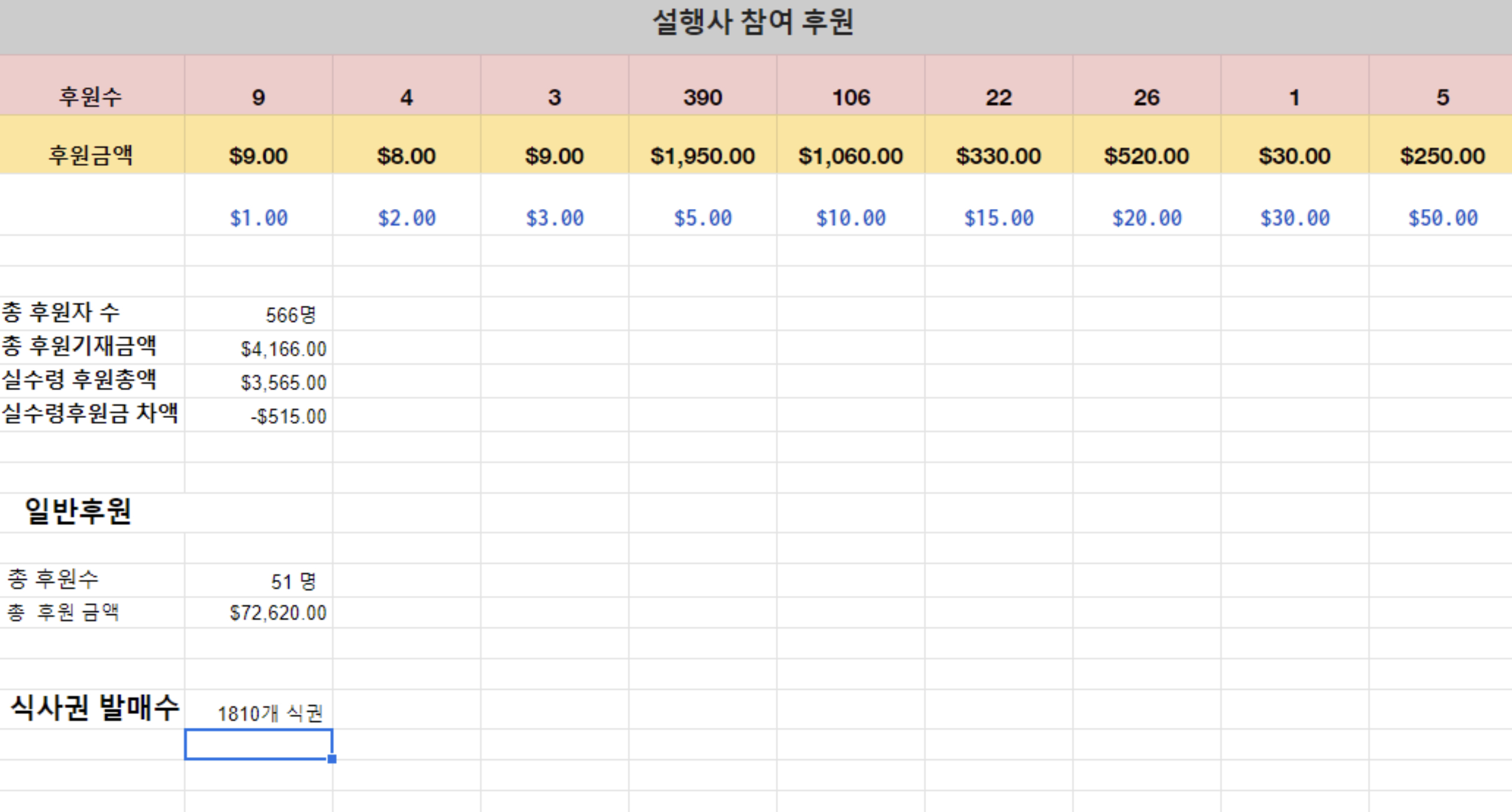 달라스 한인회, 설행사 후원자 수 및 총금액 공개