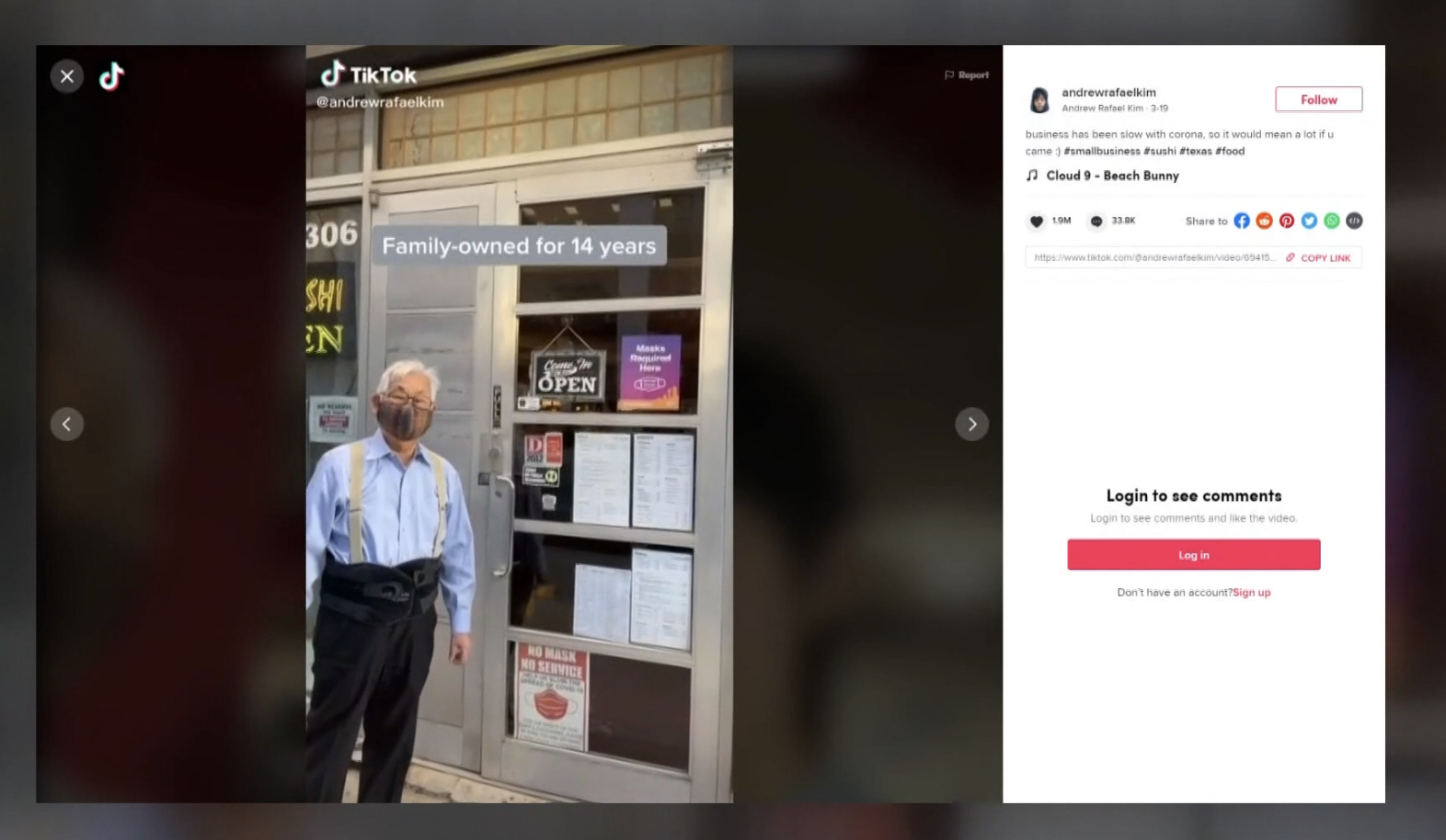 손자인 앤드류 김은 지난 3월 19일 할아버지를 돕고 싶어 틱톡에 식당으로 오라는 가벼운 홍보영상을 올렸다. 결과는 놀라웠다.
