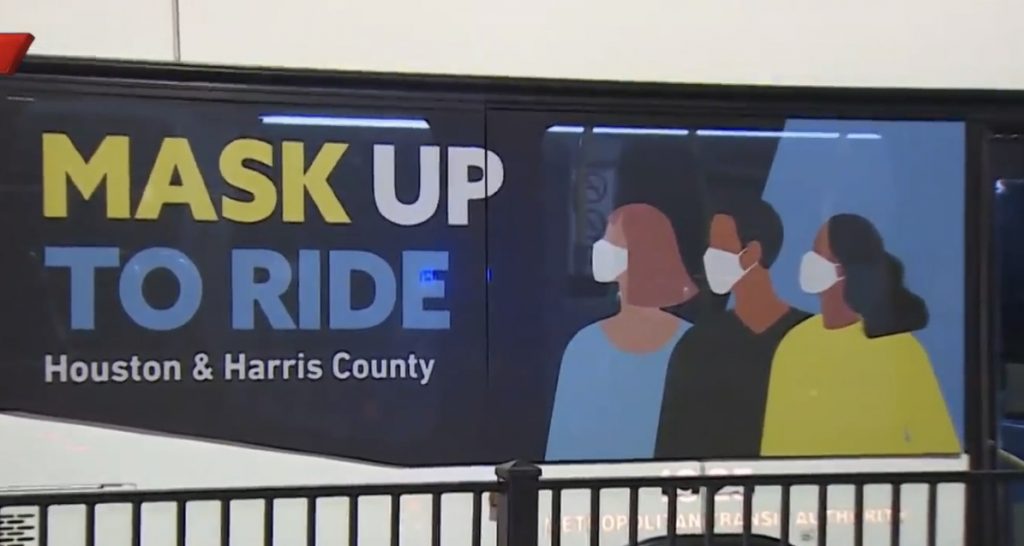 사진 / 휴스턴의 메트로 버스에 부착된 마스크 착용 경고문