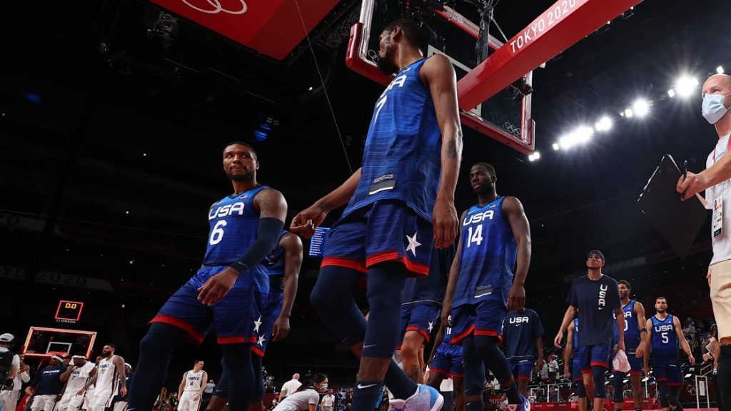 사진/ 로이터 (Kevin Durant of the United States and Damian Lillard of the United States look dejected after the match with teammates)
