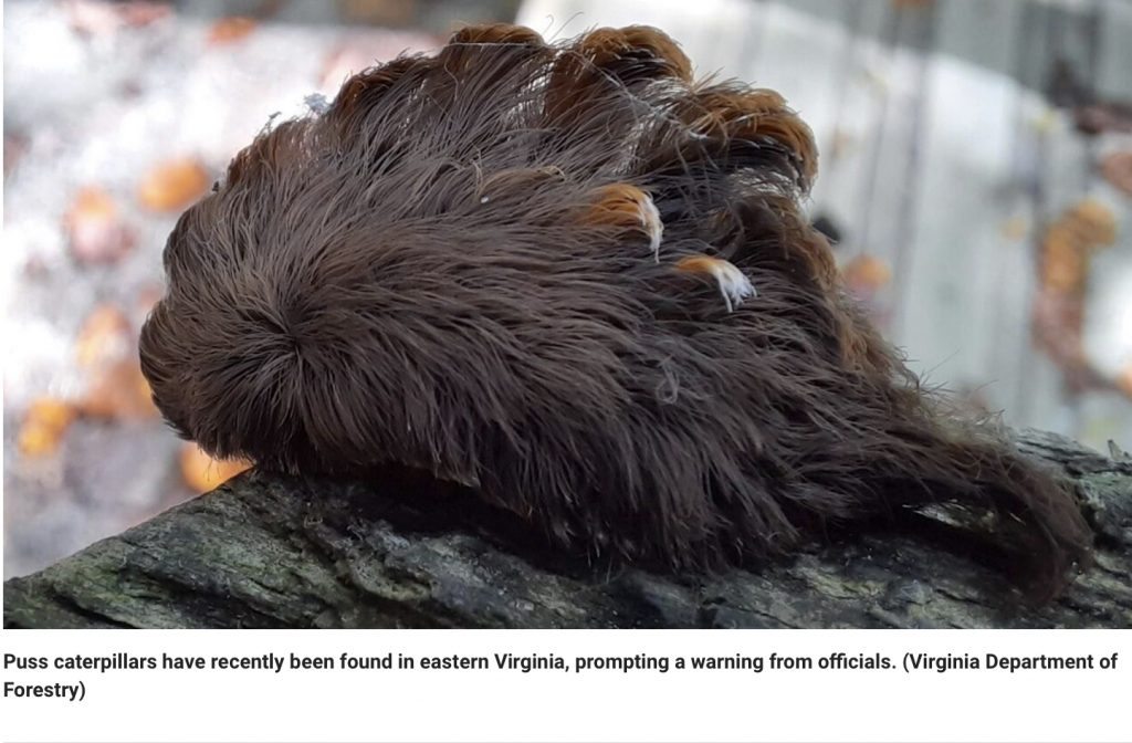 버지니아주에서 온몸이 털로 뒤덮인 애벌레가 발견됐다. 버지지아 주정부는 이번에 발견된 애벌레는 강한 독을 가지고 있어 절대로 만져서는 안된다고 경고했다. 버지니아 산림국(Virginia Department of Forestry)은 소셜네트워크를 통해 버지니아주 동부지역에서 같은 종류의 애벌레가 여러개체가 발견됐다고 밝히고 주의를 당부했다.