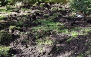 맷돼지들이 파헤친 피해주택 앞마당 모습