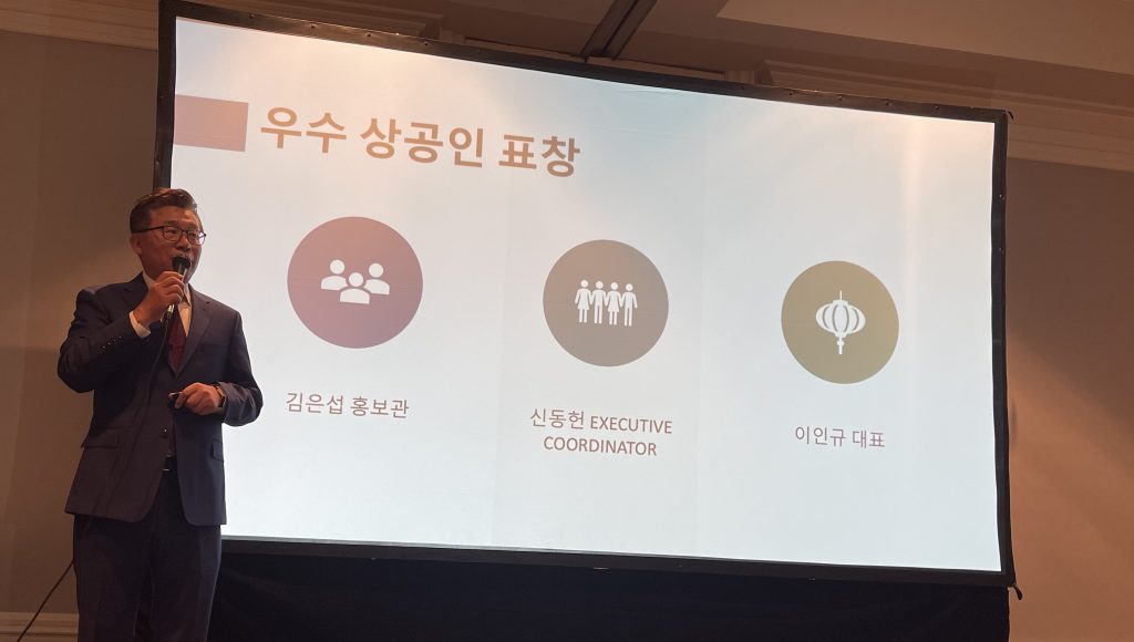달라스 한인상공회는 이어 우수상공인에 블루라임의 이인규대표를 선정, 표창장을 수여했다. 블루라임은 온라인 플렛폼 관련 비즈니스로 달라스 한인 상공인들에게 다양한 IT환경을 제공했고 지난 한해동안 달라스한인상공회를 뒷받침해왔다.