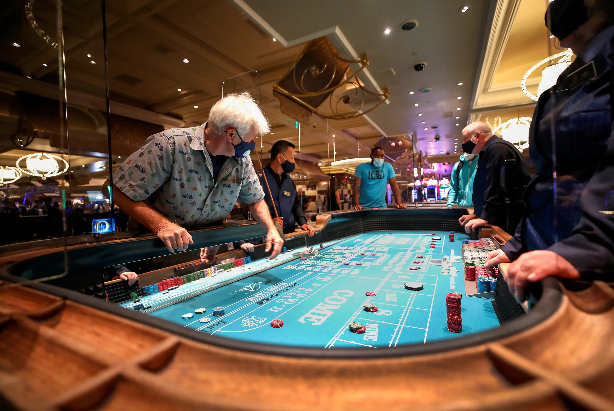 사진/ 텍사스트리뷴(Gene Koonce plays on a craps table fitted with protective plexiglass panels during the reopening of Bellagio hotel-casino, closed since March because of COVID-19. Las Vegas, Nevada on June 4, 2020. Credit: REUTERS/Steve Marcus)