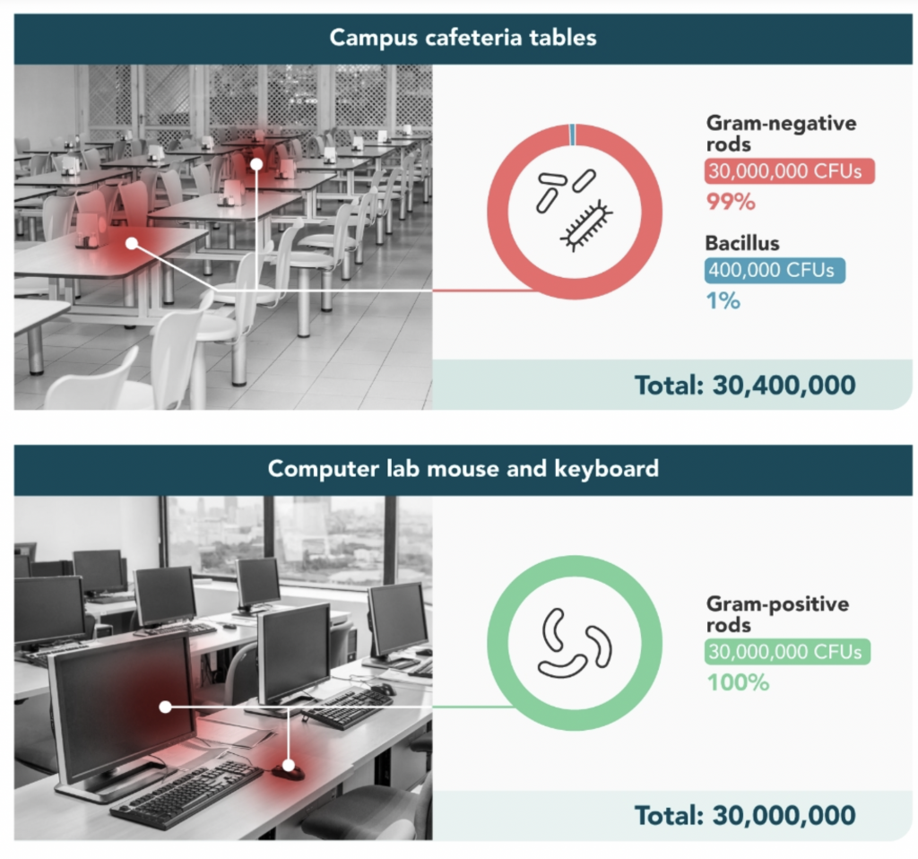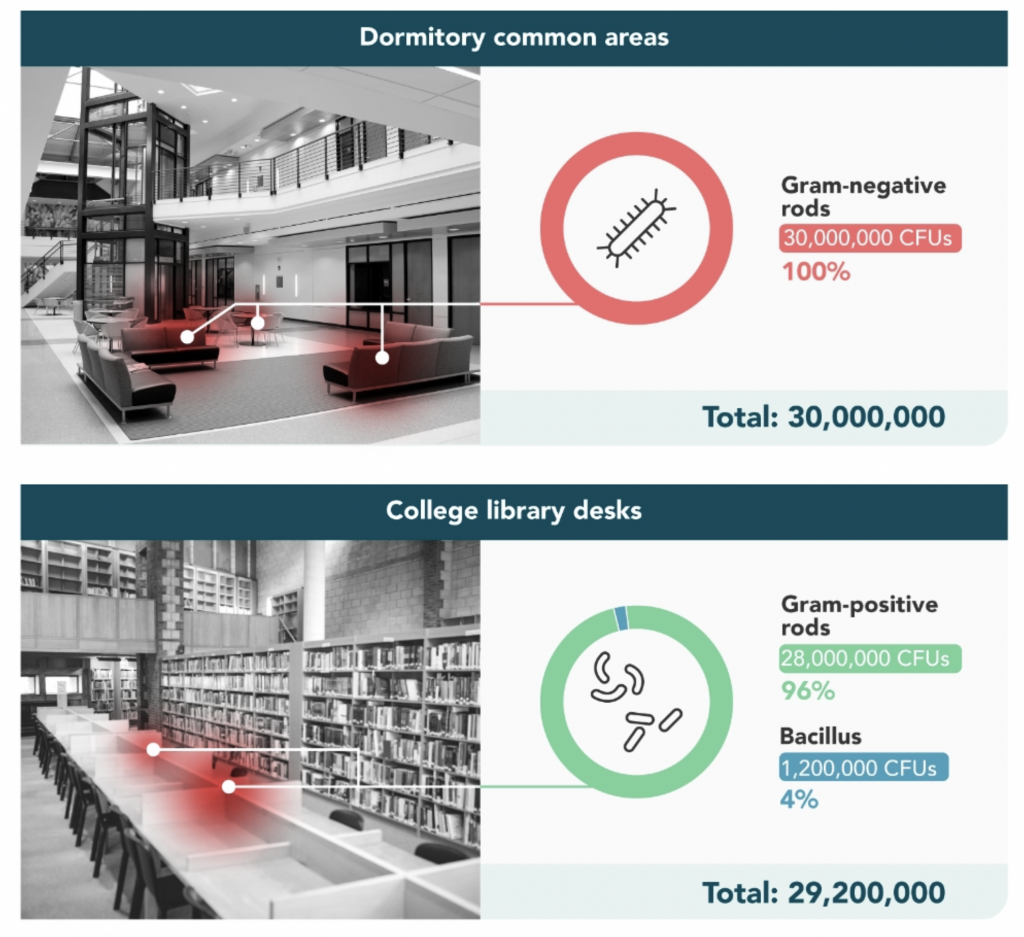 칼리지로버는 캠퍼스 내 공용화장실부터 기숙사 공용공간, 컴퓨터실 키보드 등 공용으로 사용하는 공간에 대한 위생상태를 조사했다. 또 1,000명의 대학생을 대상으로 위생습관과 캠퍼스에서 본 가장 불쾌한 것이 무엇인지에 대해 설문조사를 실시했다.