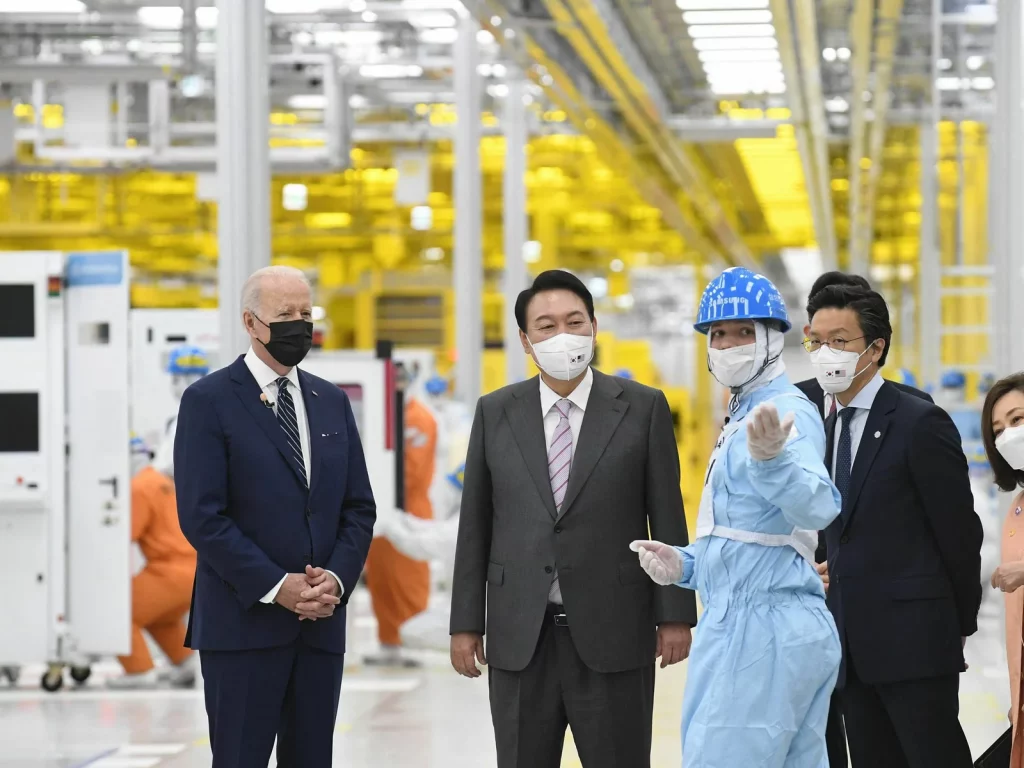 사진/ NPR (President Biden tours a Samsung plant in Pyeongtaek, South Korea with South Korean President Yoon Suk-youl on May 20, 2022. The company is building a massive new campus in Texas. Kim Min-Hee/Pool/AFP via Getty Images)