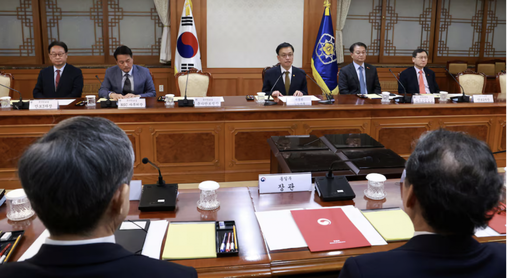 사진/ 로이터 (South Korea’s acting President, deputy Prime Minister and Finance Minister Choi Sang-mok presides over National Security Council at the government complex in Seoul, South Korea, December 27, 2024. Yonhap via REUTERS)