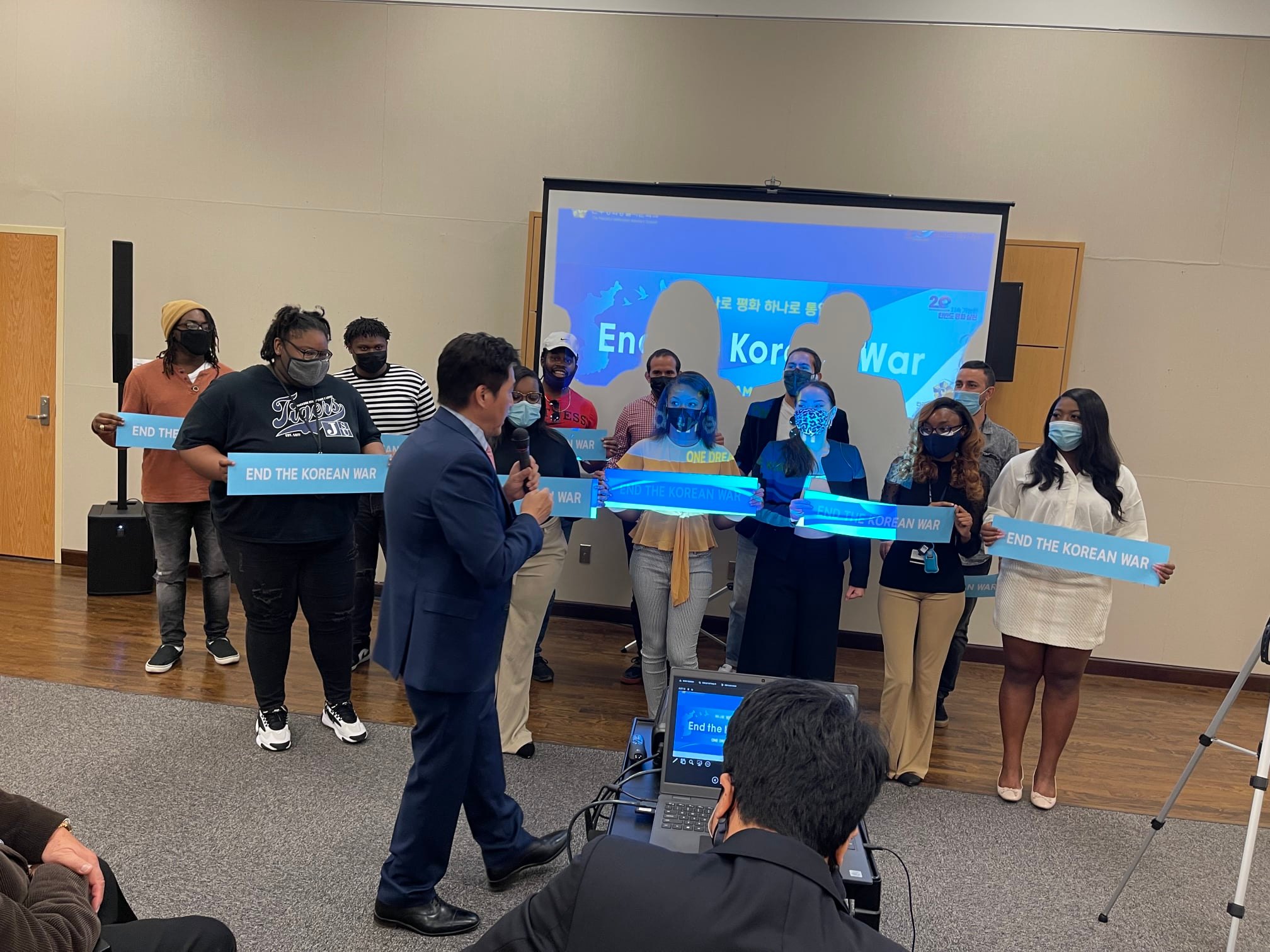 이날 평화에세이 공모전 시상식에서는 Dr. Thomas K. Hudson 총장에게 한반도평화법안 지지 부탁 서한 전달, 학생들과 함께 종전선언 켐페인을 실시했다.