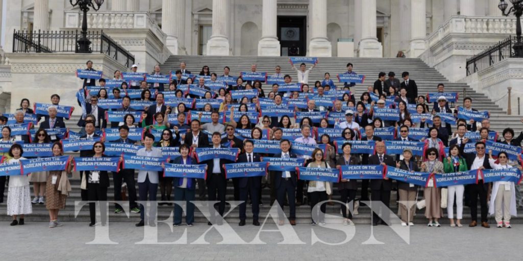 [사진=텍사스N file] 지난해 5월 23일(목) 워싱턴 DC에서 열린 ‘2024 한반도 컨퍼런스’에 참석한 미주민주참여포럼  회원들이 연방의회 의사당 앞에서 미국의회를 향해 한반도평화법안 지지를 촉구하고 있다.