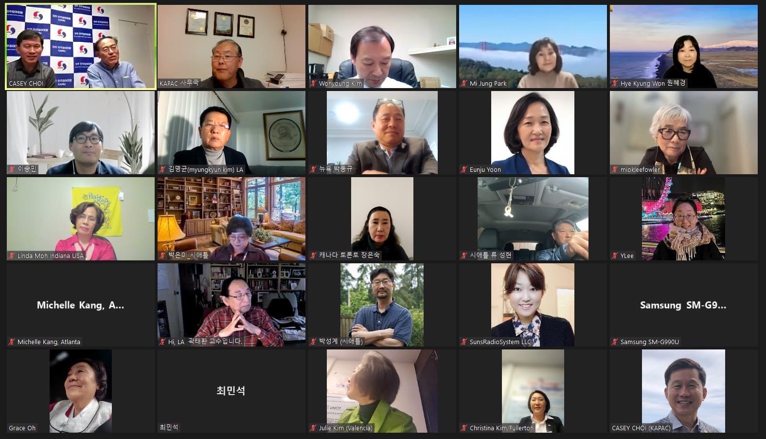 KAPAC은 지난 13일(금) 온-오프라인 하이브리드 방식으로 2023년 신년확대운영위원회를 개최했다. 계묘년 새해를 맞이해 임원진을 대폭 확대 개편한 KAPAC 신년 확대운영회의에는 최광철 대표와 최규선 이사장을 비롯한 이사, 임원 및 각 지역대표 40여명이 참석한 가운데 2022년 사업보고와 재무보고를 실시하고 작년 11월 워싱턴 D.C.에서 개최한 ‘한반도 평화 컨퍼런스 2022 (KPC)’ 행사를 평가했다.