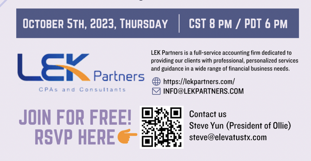 온라인 세미나에 참석을 원하는 사람은 올리의 스티브 윤 회장에게 연락하면 된다. (Steve@elevatustx.com)