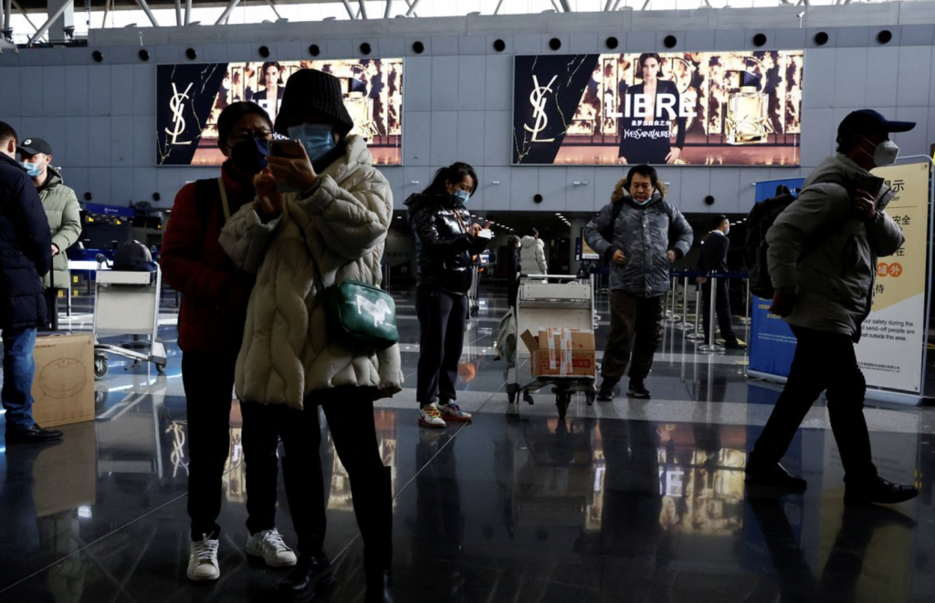 사진/ 로이터 (Travellers stand by their luggage at Beijing Capital International Airport, amid the coronavirus disease (COVID-19) outbreak in Beijing, China December 27, 2022. REUTERS/Tingshu Wang)