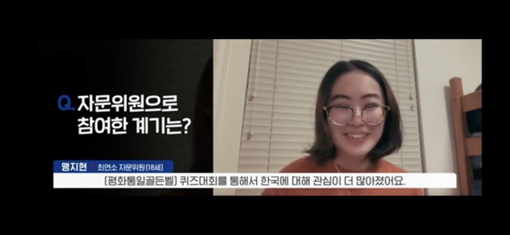 맹지현 위원은 “최연소 자문위원이라는 것 자체가 크게 느껴진다”면서 “미국에 살면서 (한반도) 평화를 알리고 싶다. 최선을 다하겠다”고 밝히며 전세계 자문위원들의 큰 박수를 받았다.