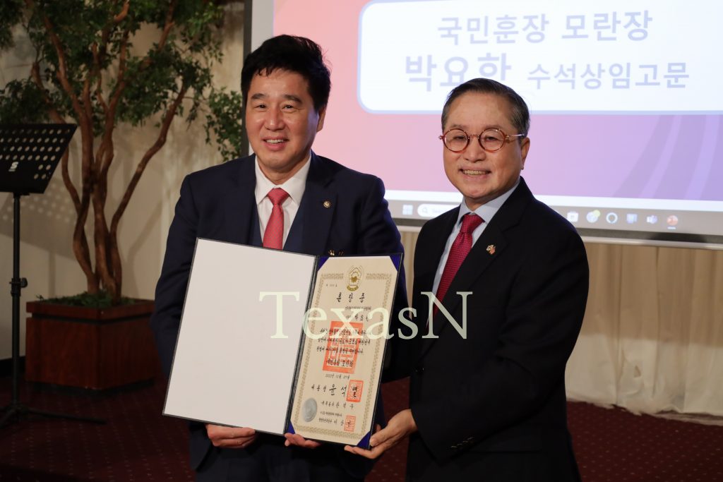 또한 휴스턴 협의회 역사상 최초이자 휴스턴 한인사회 최초로 국민훈장 모란장을 수훈한 휴스턴협의회 박요한 전회장에 대한 축하가 이어졌다.