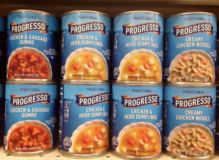 캔에 들어있는 식재료도 안심할수 없다. 프로그래소 치킨 스프(Progresso Chicken Soup) 14-oz 캔은 내용물이 치킨이 아닌 정체불명의 돼지고기와 소고기가 섞여있어 충격을 더했다. 수천파운드의 치키 스프가 이미 리콜됐다. 이 제품은 다른 내용물이 첨가된 것 외에도 알레르기 유발 물질이 포함된 사실을 고지하지 않아 전량 회수됐다.