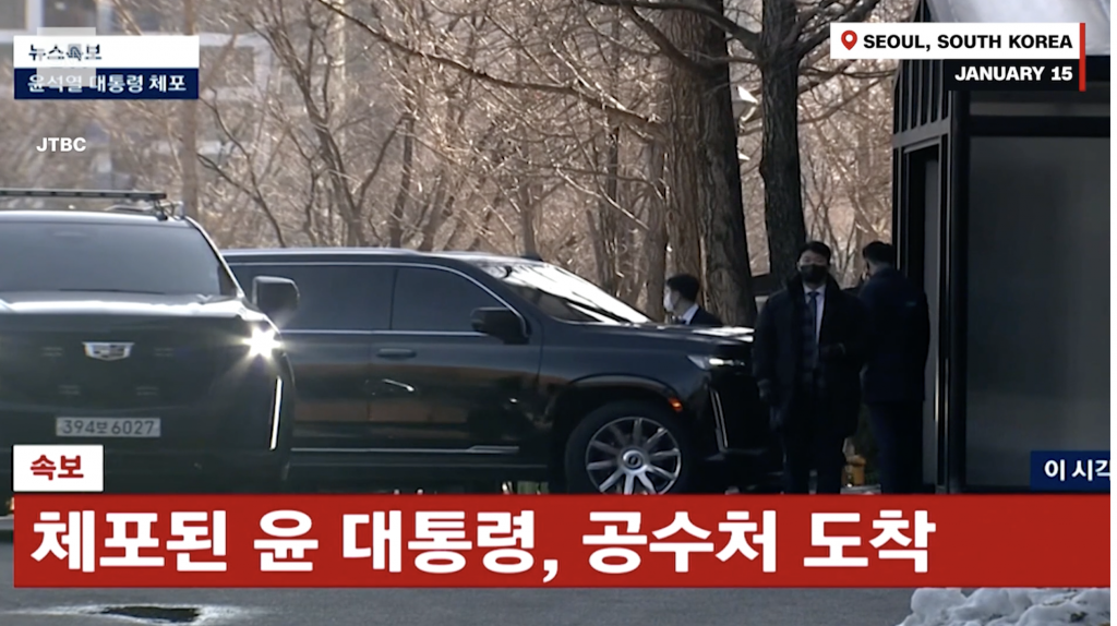 한국의 고위공직자범죄수사처는 한국시간 15일 오전 10시 33분 한남동 관저에서 윤석열 대통령의 내란혐의 체포영장을 집행했으며 48시간 이후 구속영장 청구 여부를 결정해야 한다.
