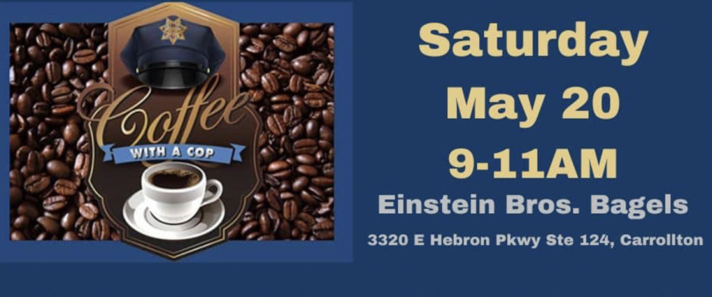 북텍사스 한인상권과 거주지가 밀집된 캐롤튼시의 경찰국(Carrollton Texas Police Department)이 오는 20일(토) 오전 9시부터 11시까지 아인슈타인 브로스(Einstein Bros. Bagels (3320 E Hebron Pkwy, Carrollton, TX)에서 ‘경찰관과 커피’ 행사를 마련했다.