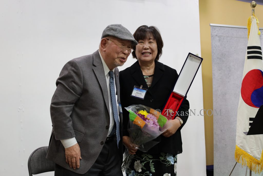 북텍사스 한인원로회 커뮤니티 어워드 수상자인 박용인 삼성전자 사장 대신 달라스 한국학교 헬레나 김 이사장이 대리수상했다.